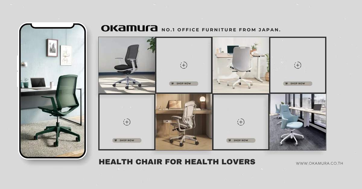 การให้ความสำคัญกับคุณสมบัติของเก้าอี้ทั้ง 10 ข้อนี้ จะช่วยให้คุณคัดเลือกเก้าอี้สำนักงานที่ได้มาตรฐาน เมื่อกายนั่งสบาย ใจก็พร้อมลุยงานได้อย่างเต็มที่ สำหรับใครที่ต้องการสัมผัสประสบการณ์การนั่งที่เหนือระดับ Siam Okamura พร้อมให้คำปรึกษาและแนะนำ เก้าอี้ทำงานรุ่นต่าง ๆ ที่ออกแบบมาเพื่อตอบโจทย์ทุกไลฟ์สไตล์การทำงาน ไม่ว่าจะเป็นเก้าอี้ Ergonomic หรือเฟอร์นิเจอร์สำนักงานอื่น ๆ ที่จะช่วยยกระดับคุณภาพชีวิตในที่ทำงานของคุณให้ดียิ่งขึ้น หากสนใจสินค้า สามารถสอบถามข้อมูลเพิ่มเติมได้ที่ โทร. 0-2661-5474-9 อีเมล webcontact@th.okamura.com หรือ Official Store ในแพลตฟอร์มอีคอมเมิร์ซชั้นนำต่าง ๆ เช่น Shopee และ Lazada