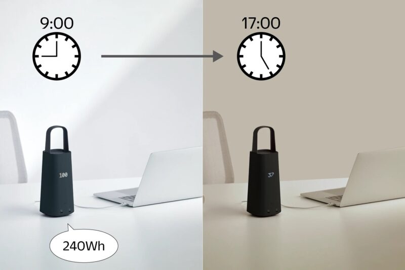 Delivers up to 100W output, providing about 3.5 laptop charges or 14 smartphone charges on a single battery. Enough power to comfortably support a full day’s work without relying on wall outlets. *Assumes 50Wh for laptops and 12Wh for smartphones. *USB Type - C™ PD cable and compatible devices required for laptop charging.