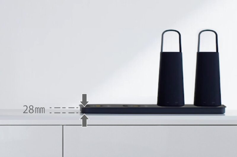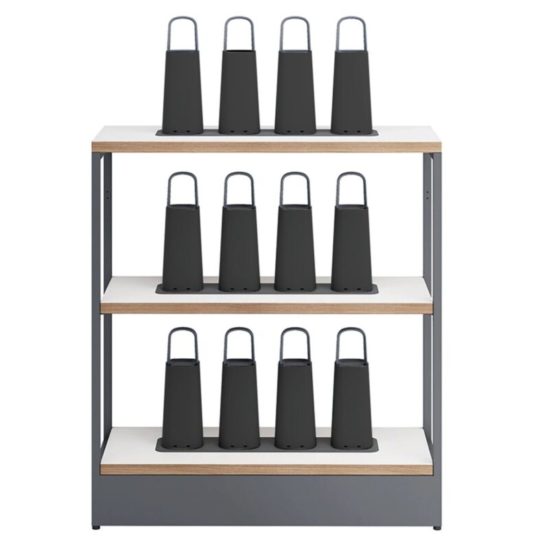 Placed on shelves in shared spaces, OC is always within reach before starting work. Clean cable management, with underfloor wiring, keeps the space tidy and visually appealing. The charging tray can be placed on existing furniture or seamlessly integrated into custom-built pieces.