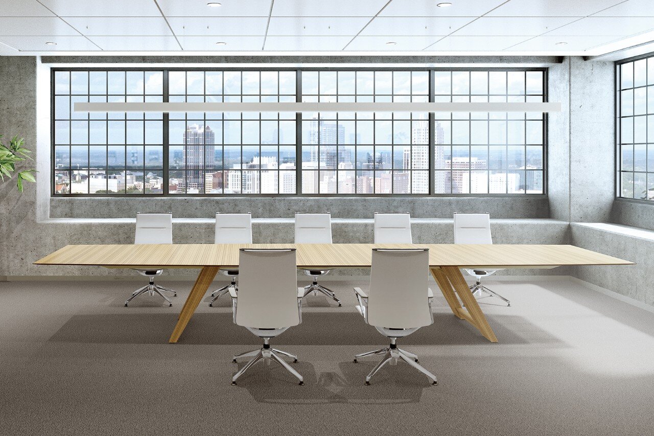 V Conference Tables are offered in beautiful, high-quality finishes of wood veneers. Transitions between sections of the tabletop are seamless, creating a single, uninterrupted, beautiful span.